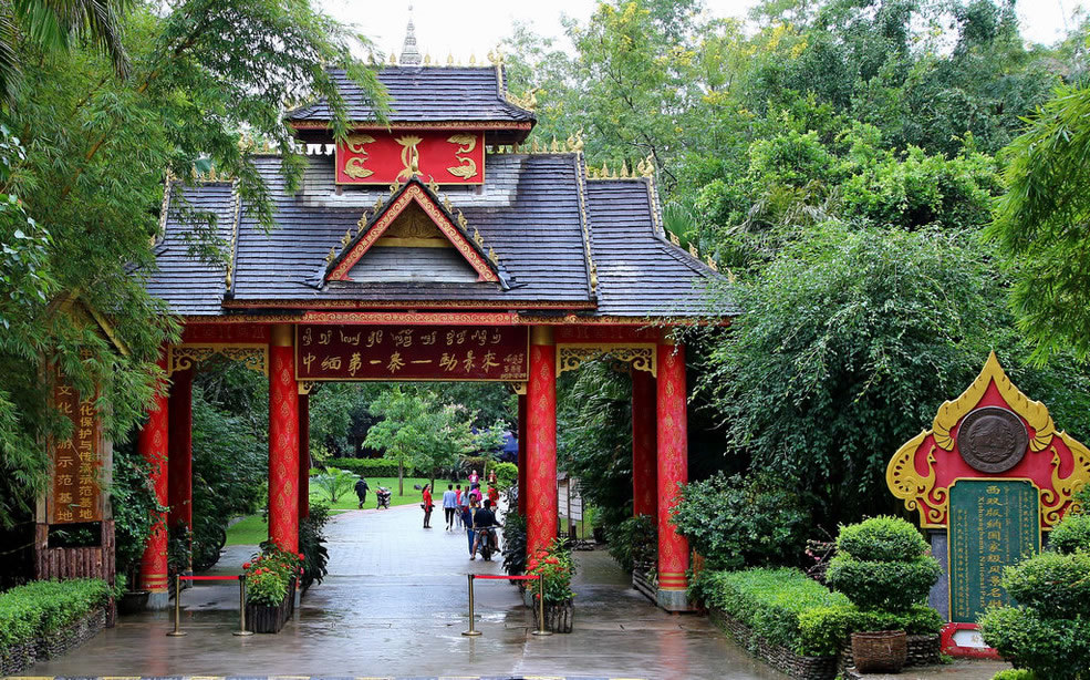 正門→塔林→佛寺→傣族傳統文化陳列館→干欄式傣樓→229界碑→潑水狂歡→返程。