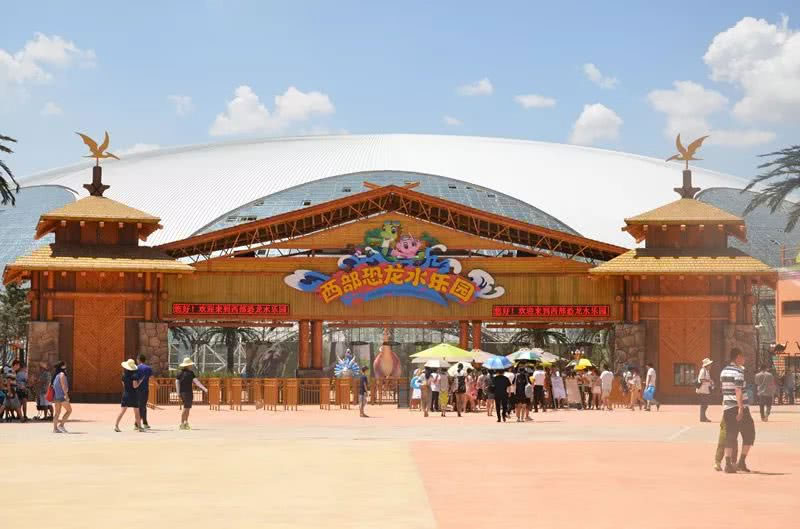 西部恐龍水樂(lè)園位于蘭州新區(qū)鳳凰山路1555號(hào),總建設(shè)用地約2200畝,包含室內(nèi)外兩大水樂(lè)園區(qū)域。室內(nèi)水樂(lè)園采用28℃恒溫系統(tǒng)實(shí)現(xiàn)全年運(yùn)營(yíng),配備歡樂(lè)島、加勒比海灘等17項(xiàng)國(guó)際化游樂(lè)設(shè)施;室外區(qū)域設(shè)有造浪池、叢林旋渦等12組水上游樂(lè)設(shè)備。園區(qū)以恐龍為主題,布置仿真模型及恐龍化石展品,兼具科普教育與娛樂(lè)功能。