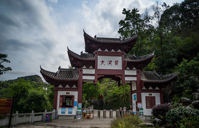 大河背風景區位于廣東省梅州市平遠縣中行鎮仲石村西南,距縣城約10公里。景區總面積約10平方公里,以丹霞地貌為特色,屬全國第680處丹霞地貌區,兼具“小桂林”喀斯特景觀。區內湖面延伸5公里,庫容168萬立方米,分布松竹密林及華南蘇鐵等珍稀植物,包含龍潭瀑布、冰臼群、飛鳥穿洞等地質奇觀,以及清代甘露亭、太平天國摩崖石刻(1985年列為縣級文保單位)等人文遺跡。景區融合山水景觀與旅游設施,建有高空玻璃橋、游船航線、叢林穿越等項目,開發徒步路線、峽谷游船及四季主題游覽活動。周邊配套餐飲、住宿等設施,提供門票、組合票等多元消費選擇。兼具生態保護與水電站能源開發功能,是粵東北地區綜合性生態旅游目的地。