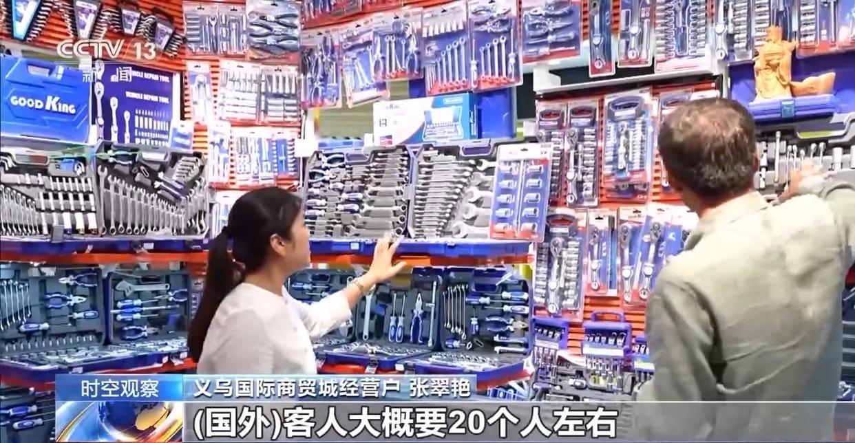 義烏國際商貿城經營戶 張翠艷:去年我們每天進店的國外客人可能10個人,今年夏天我們每天進店的國外客人大概20個人左右,明顯國外客人增加比較多。有很多國家的客人,中亞的比較多,最近非洲的、南美的也很多。