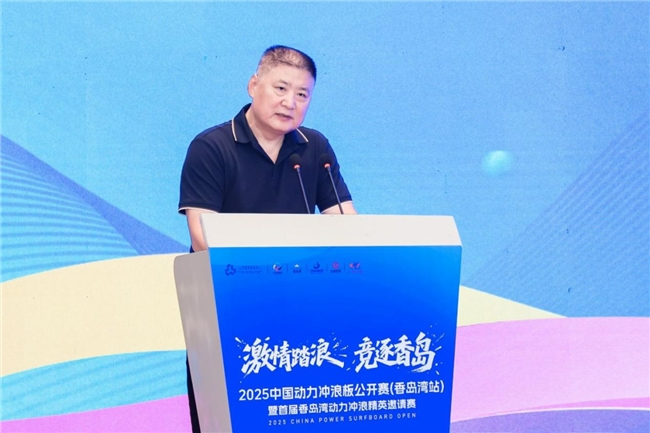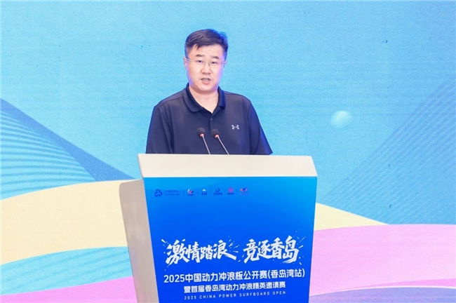 發布會上,萊陽市人民政府副市長李誠首先發表致辭,對蒞臨現場的各位領導、嘉賓及媒體朋友表達了誠摯的歡迎與感謝。他強調,動力沖浪板運動作為時尚、刺激與科技完美融合的新興水上項目,近年來在全球范圍內迅速崛起,深受廣大青年及戶外運動愛好者的青睞。中國動力沖浪板公開賽作為國內頂級賽事,歷經多屆積淀,已擁有深厚的辦賽底蘊與廣泛的社會影響力。香島灣站的設立及首屆香島灣動力沖浪精英邀請賽的創辦,旨在積極響應國家全民健身戰略,推動水上運動的普及與提升,深化體育與旅游的融合發展,進一步彰顯香島灣地區的魅力與知名度。
