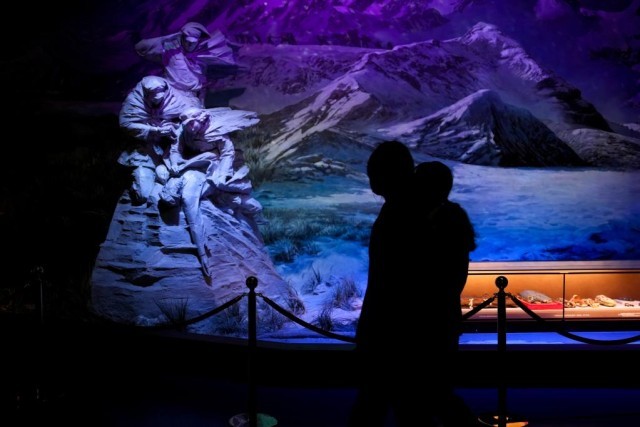 中國共產(chǎn)黨歷史展覽館,“飛躍中國”項目前聚滿排隊的游客。在這個大型球幕影院里,觀眾們可以坐上“飛行器”體驗5D觀影,新時代中國的壯麗江山仿佛觸手可及……