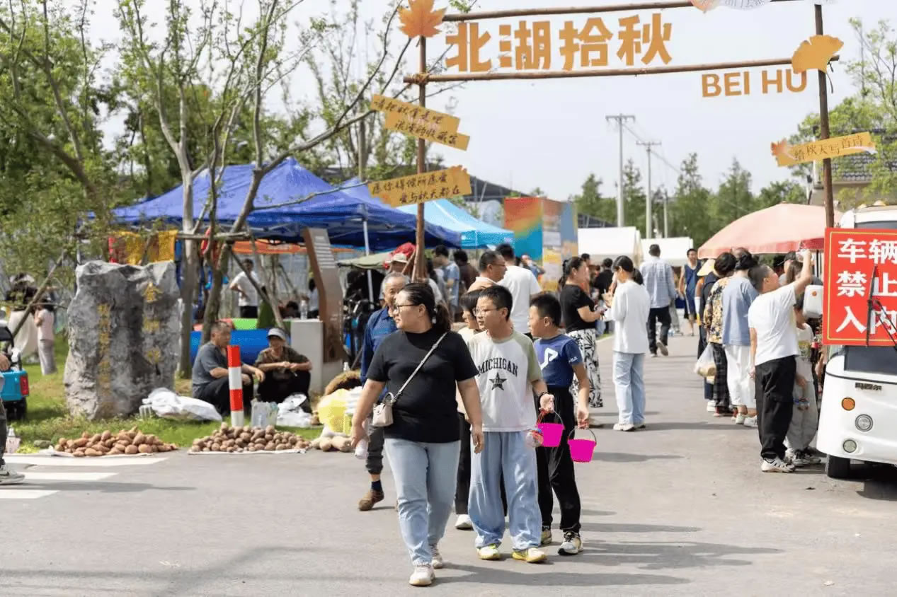 走進利民村“北湖拾秋”活動現場,田園間的鮮活氣息撲面而來。39.9元游玩套票搭配手繪版《北湖漫游手冊》,成為游客開啟體驗的“出行標配”。手冊不僅標注點位,更暗藏“集章抽獎”趣味,而“蛋蛋王國”尋彩蛋、“吃雞獵場”抓活雞、“捕魚達人”撈小魚等互動項目,讓親子家庭在追逐嬉鬧中沉浸式解鎖農耕野趣;手作稻草人守護松茸田、非遺魚燈點亮秋日祈愿等“秋作”體驗,則讓游客在指尖創作中觸摸鄉村文化肌理。尤其是9.9元的“一米菜田”認領計劃,既圓了城市人“躬耕田園”的向往,更通過“認養+托管”模式為村集體帶來長期穩定收益,實現“游客得樂趣、集體增收入”的雙贏。