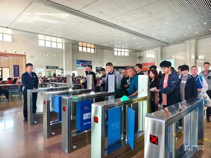 假日期間,奎屯站內旅客正有序檢票乘車 (央廣網發 王雅琪 攝)