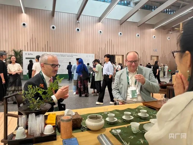 頒獎(jiǎng)儀式現(xiàn)場,外賓品茗安吉白茶(央廣網(wǎng)記者 項(xiàng)楠 攝)