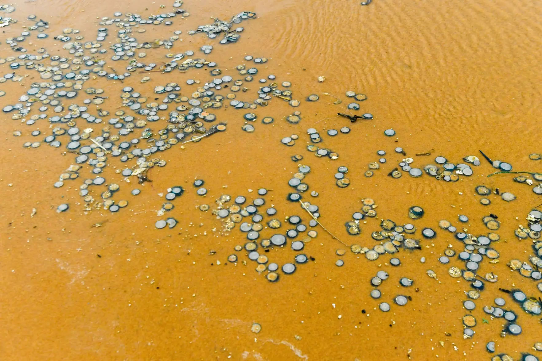 海灘上出現(xiàn)的銀幣水母(央廣網(wǎng)發(fā) 康登淋 攝)