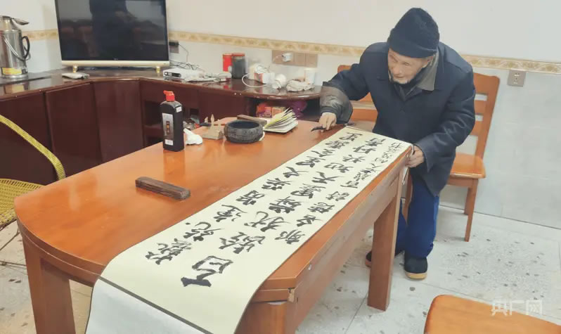 在漚江鎮(zhèn)上東村,101歲的何茂基正站在案前揮毫潑墨,握筆穩(wěn)穩(wěn)當(dāng)當(dāng),行筆蒼勁有力。這位世紀(jì)老人的日常生活,正是桂東長壽現(xiàn)象的生動體現(xiàn)。