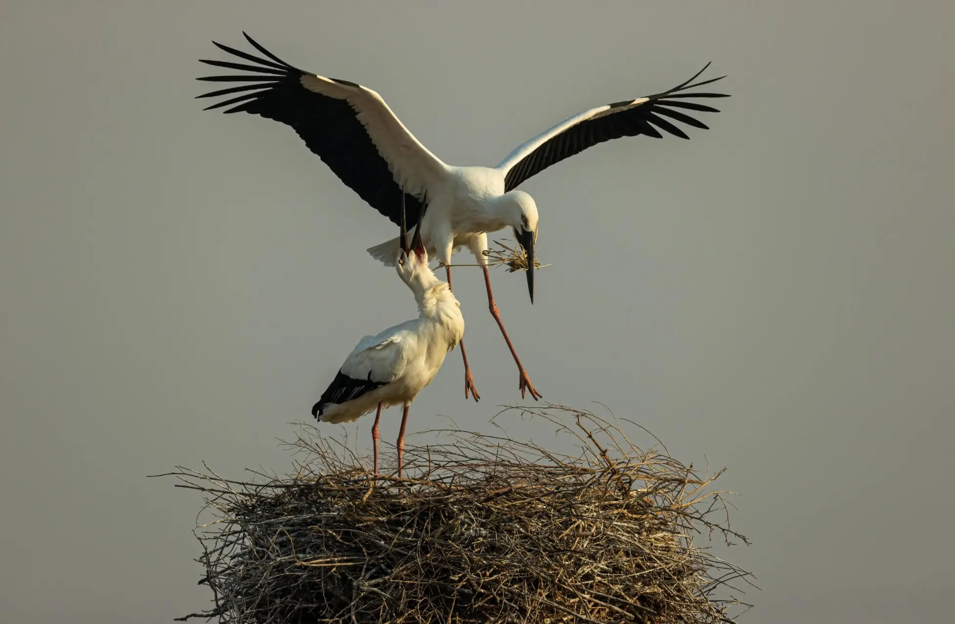 銜枝筑巢的東方白鸛(國家林業和草原局供圖)