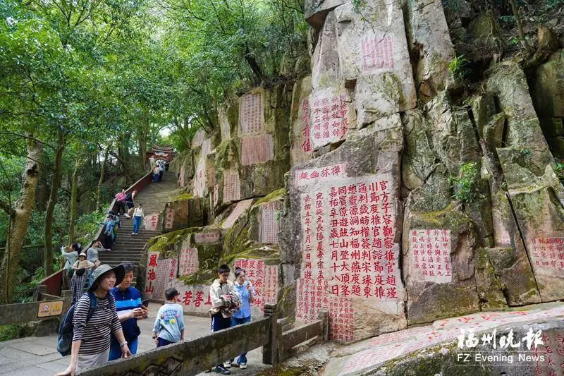 與水云亭修繕同步完成的,還有鼓山摩崖石刻的保養(yǎng)維護工程。該工程歷時3個月,范圍涵蓋石蹬古道、十八景、靈源洞、絕頂峰等地的摩崖石刻。經(jīng)過刷洗、描紅后,這些石刻更加清晰醒目,吸引眾多游客駐足拍照。(記者 王光慧/文 包華/攝)