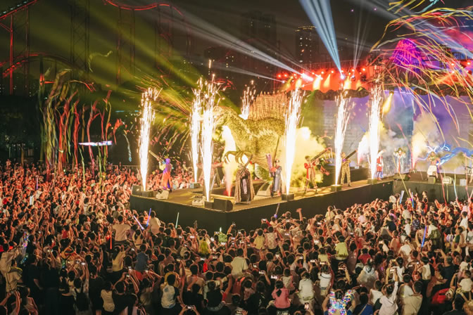 不僅有奇幻新世界,更有奇趣新體驗。劇場里,《復活恐龍D計劃》魔法秀展現恐龍主題趣味魔法,《魯樂回家》音樂劇傳遞人與自然之間的溫暖,《恐龍島危機》特技表演詮釋冒險旅途的驚險刺激;項目前,“百龍軍團”“角角見面會”“邂逅侏羅紀”等仿真恐龍的快閃互動實現了游客“與龍同行”的震撼奇觀;巡游中,“怪獸天團”“逗趣南瓜團”“鬼馬精靈”花車巡游從日落到夜幕,一路載歌載舞,在全新“奇幻D秀”結合電音派對點亮夜空與舞臺,為大小游客留下難忘的假日歡樂。