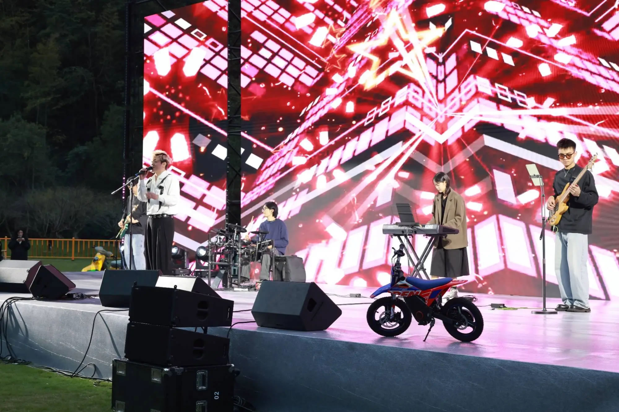 隨著機車隊伍陸續抵達,十九峰大草坪迅速化身為音樂狂歡的海洋。從午后到夜晚,舞臺持續高能輸出。搖滾樂隊點燃全場熱情,流行金曲引發集體合唱。