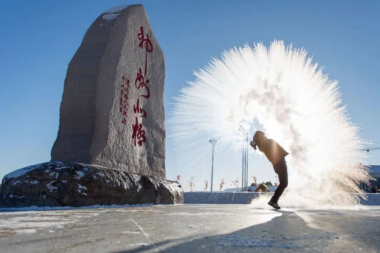 神州北極潑水成冰(哈爾濱市旅游協會供圖)