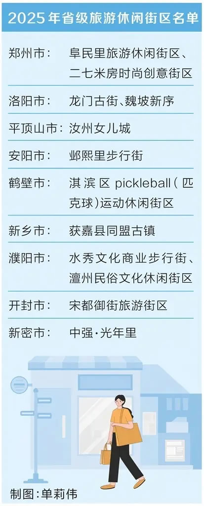 11月14日,河南省發展改革委根據《旅游休閑街區等級劃分》國家行業標準(LB/T082-2021)和《河南省省級旅游休閑街區評定細則(試行)》,認定鄭州阜民里旅游休閑街區、洛陽龍門古街、安陽鄴熙里步行街等12家休閑街區為2025年河南省省級旅游休閑街區。