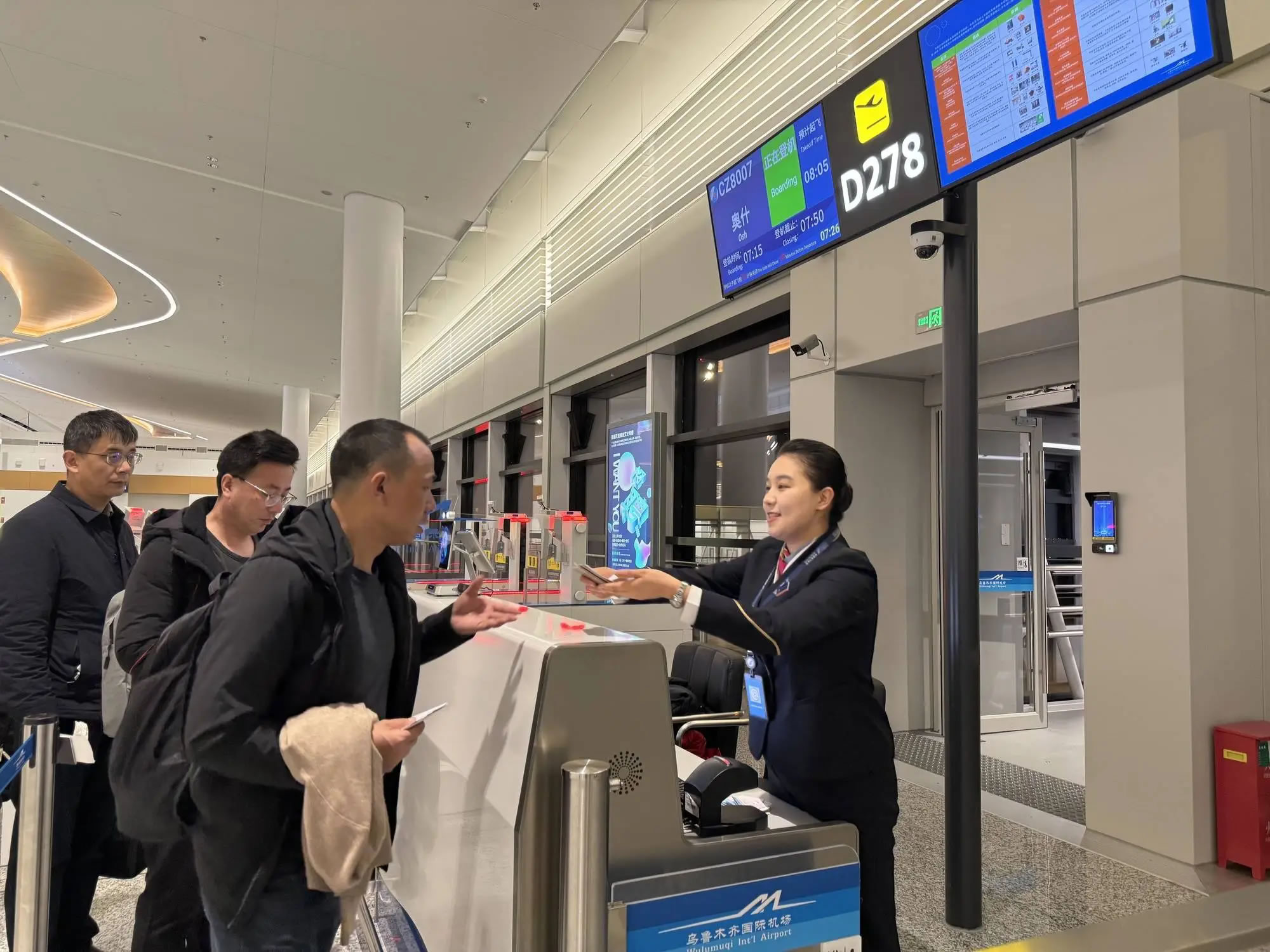 南航新疆分公司成立專項保障小組,圍繞航班調(diào)度、地面服務(wù)、機組籌備、通關(guān)協(xié)調(diào)等環(huán)節(jié)制定全流程預(yù)案。依托中吉雙向免簽政策紅利,南航在F島國際值機區(qū)開設(shè)復(fù)航專屬保障專柜,精選業(yè)務(wù)骨干全程負(fù)責(zé)證件核驗、行李規(guī)范、出境流程咨詢等服務(wù)。通過提前梳理旅客信息、預(yù)判出行需求,搭配多臺支持中、英、俄等58國語言實時互譯的智能翻譯設(shè)備,破解跨境溝通障礙,確保出入境流程、行李規(guī)定等信息傳遞零誤差,助力旅客快速通關(guān)。保障小組還從證件核對到登機引導(dǎo),全程跟進(jìn)特殊旅客需求,提供全方位貼心服務(wù)。