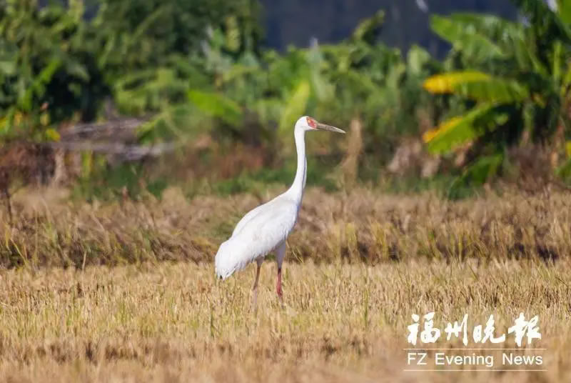 天漸冷,候鳥至。這不,在福州知名觀鳥基地——連江縣東岱鎮山堂村,近日迎來了“鳥類活化石”——白鶴。