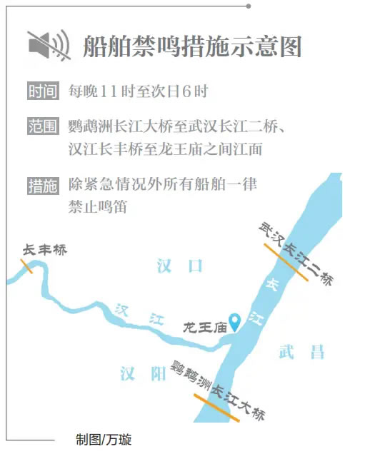 生態(tài)長(zhǎng)江的底色愈加深厚。近日,武漢市首次在限定水域?qū)嵤┐耙归g噪聲管控。每晚11時(shí)至次日6時(shí),武漢市鸚鵡洲長(zhǎng)江大橋至武漢長(zhǎng)江二橋、漢江長(zhǎng)豐橋至龍王廟之間,總長(zhǎng)約20公里的江面進(jìn)入“靜音模式”,除緊急情況外所有船舶一律禁止鳴笛,為兩岸群眾營(yíng)造優(yōu)質(zhì)夜間休息環(huán)境。