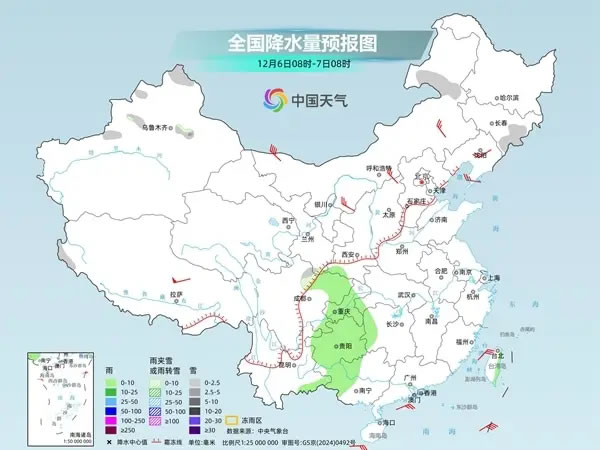 具體來看,今天,新疆北疆北部和南疆西部山區(qū)、內(nèi)蒙古東北部、黑龍江西北部、西藏東部等地部分地區(qū)有小到中雪或雨夾雪,其中,新疆北疆北部等地有大雪。貴州西南部、云南東部、廣西西部、海南島、臺灣島等地部分地區(qū)有小雨。