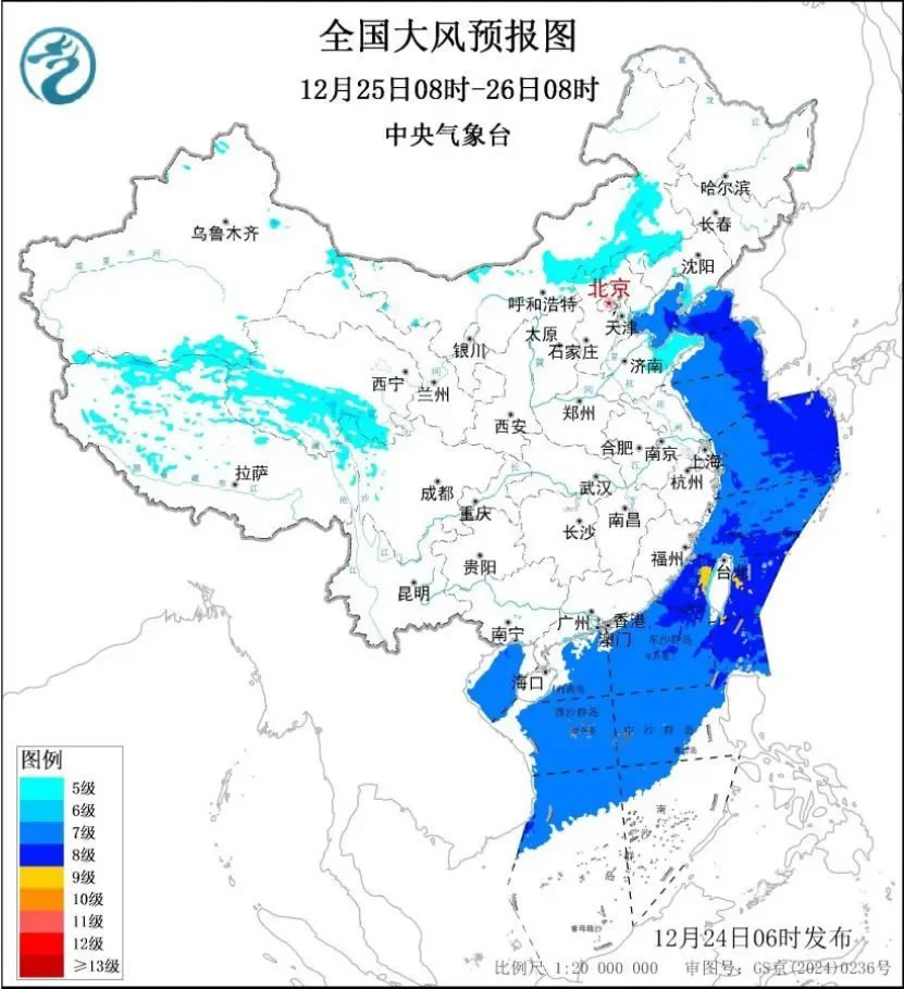中央氣象臺(tái)今晨繼續(xù)發(fā)布大風(fēng)藍(lán)色預(yù)警:今天,西藏中西部、青海南部、內(nèi)蒙古中東部、河北北部、遼寧西部和遼東半島、山東半島等地有5~6級(jí)風(fēng),陣風(fēng)7~8級(jí);渤海、渤海海峽、黃海、東海、臺(tái)灣海峽、臺(tái)灣以東洋面、巴士海峽、南海大部海域、北部灣將有7~8級(jí)、陣風(fēng)9~10級(jí)的大風(fēng),其中,臺(tái)灣海峽、臺(tái)灣以東洋面、巴士海峽部分海域風(fēng)力可達(dá)9級(jí)、陣風(fēng)10~11級(jí)。