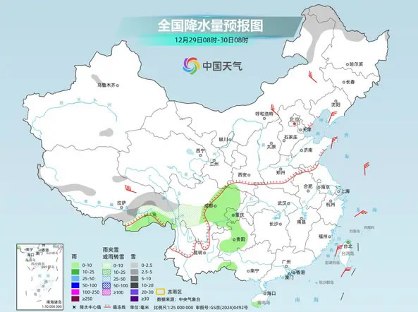 2025年12月30日至2026年1月1日,西藏東部、西北地區東部、黃淮西部、江漢西部等地部分地區將有一次明顯雨雪天氣過程,陜西、山西、河南等地部分地區雨雪混雜。雨雪天氣或影響元旦假期出行,公眾外出需關注預警預報信息,駕車出行留出安全剎車距離,謹防道路濕滑。