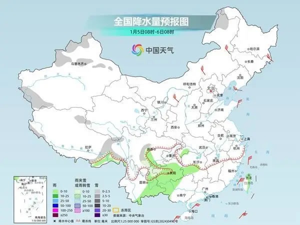 具體來看,中央氣象臺預計,今天,西北地區東南部、河南西部、湖北西部、川西高原北部、貴州西北部、青海南部、西藏南部和東部等地部分地區有小到中雪或雨夾雪;四川盆地、湖北大部、湖南北部、貴州中東部、云南大部等地部分地區有小雨,其中,云南南部等地部分地區有中雨。