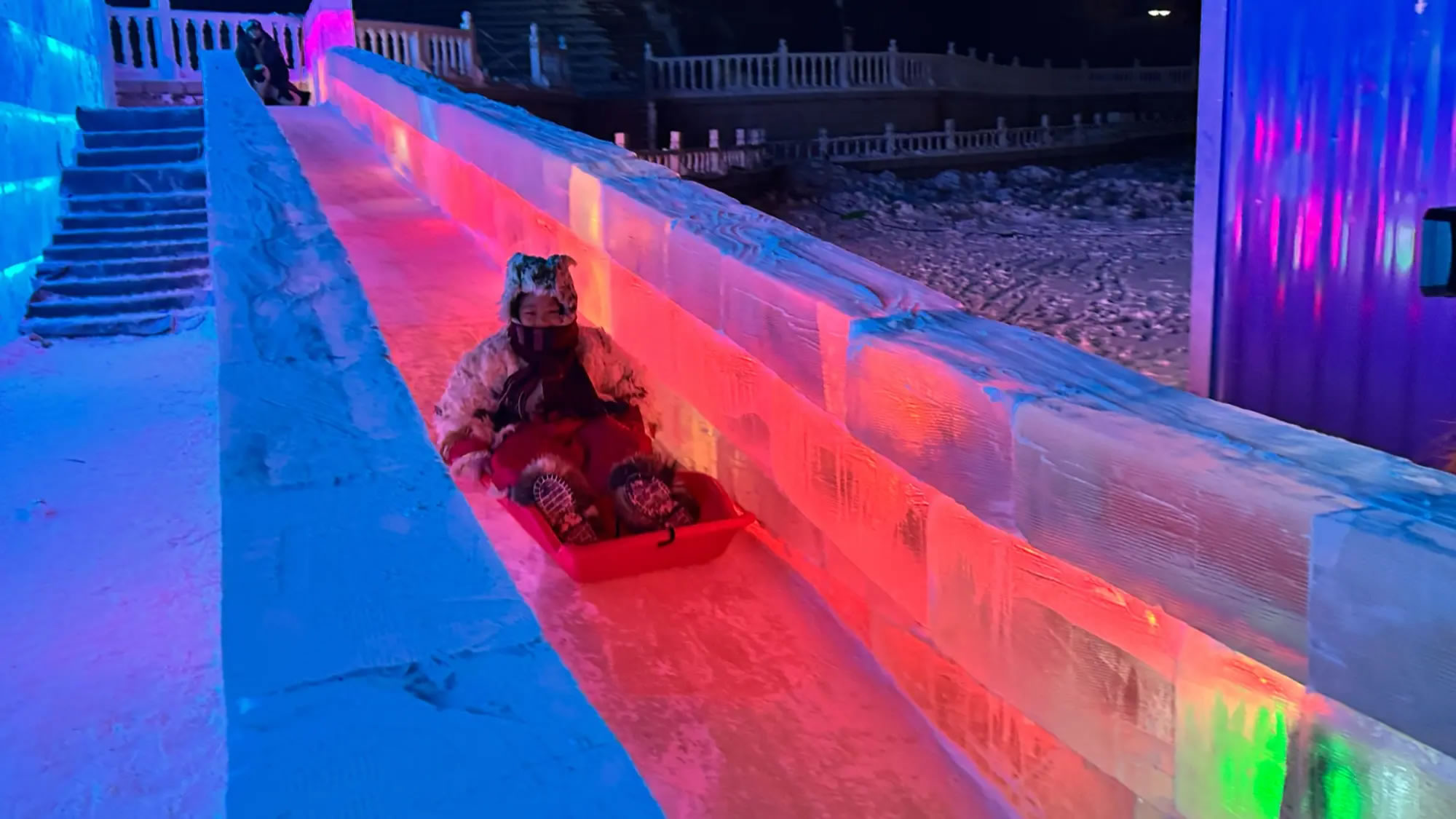 在冰雪項目體驗區,大滑梯、無動力自行車、冰上卡丁車等項目向游客開放,不少家庭攜兒童前來體驗冰雪運動的樂趣。多樣化的項目設置滿足了不同年齡段游客的游玩需求,現場秩序井然。
