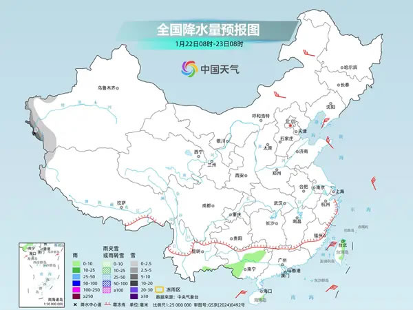 具體來看,中央氣象臺預計,今天,黑龍江中東部、山東半島、貴州中東部、重慶東北部、湖北西部、湖南中南部、江西中部、廣西東北部等地部分地區有小到中雪或雨夾雪。貴州中東部和西北部、湖南中南部、廣西北部等地部分地區有凍雨。四川盆地、貴州西南部、云南東南部、江西南部、福建中西部、廣西中西部、臺灣島等地部分地區有小到中雨。