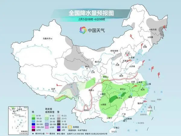 今起三天(2月5日至7日),寒潮將給中東部帶來明顯降溫,東北地區東部、江南東部降溫可超12℃,部分地區有初春重返寒冬的感覺。降溫的同時,今明天中東部還會迎來大范圍雨雪天氣,安徽中南部、江蘇中南部、浙江北部、上海等地的部分地區有大到暴雪。